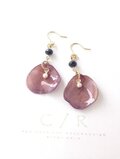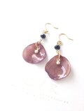 本物のバラの花びらを加工したひとつひとつ異なる形や表情が美しいpetalピアスです。自然のカラー&フリルがとってもCUTEで艶やかな花びら。上品なパープルの花びらに、ホワイトミニパールが優しく輝きを放ちます。、ブラックのカットガラスを組み合わせてシックな大人のスタイルを演出。昔から本物のお花を身に着けると幸せが訪れるという言い伝えも・・世界にひとつだけの花びらいかがでしょうか。