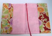 菊や萩の優しい手まり柄の表生地と絹の裏生地で作った文庫本ブックカバー。