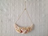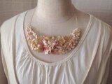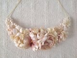三日月型に制作したレースを土台に、オフホワイトの染め花をつけたネックレスです。