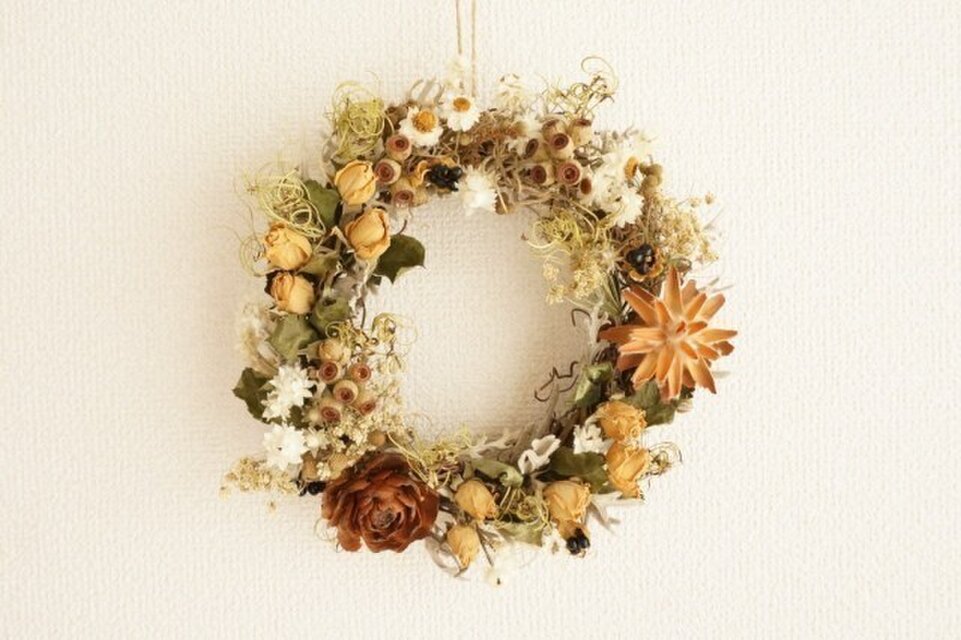 時間と共に退色していきますが、よりナチュラルなリースへと変わっていく様子もお楽しみいただけたらと思います。