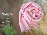 この作品は車葉草(くるまばそう)というアカネ科の植物の根で染め上げてミョウバンで媒染しピンク色に染め上げました。