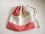 サーモンピンク、白、明るいグレーのリネンをパッチワークし、