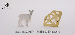 アダマントには、ダイヤモンドを示す意味もあり、強固で美しいダイヤモンドのシルエットを透かしにした土台は、動物達の可愛らしいシルエットに動物本来の気高さを感じさせてくれる大人かわいいピアスです。