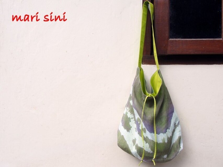 明るめのイエローグリーンの内布が、表地からほんのり透けて見えます。