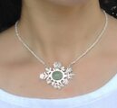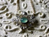 みずみずしい朝露のようなクリソプレーズを野の花で囲んだネックレスです。