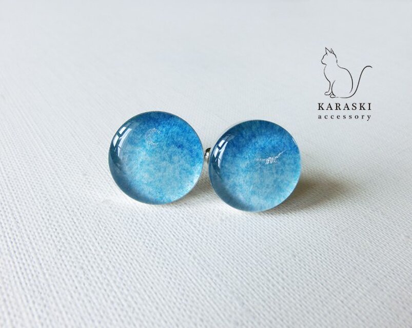 手描きの絵を樹脂で閉じ込めたカフスです。