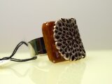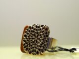 2cm x 2cmのウッドタイルとニッケルパーツを組み合わせたリングです。
