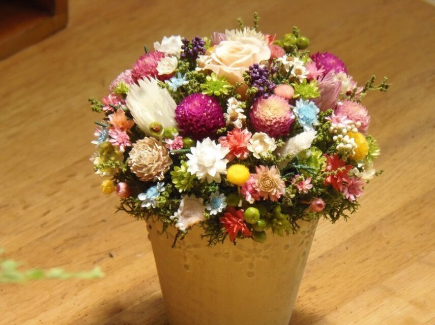 プリザーブドをメインに使用していますのでこの色合いは数年長持ちいたします