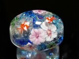 金魚と芙蓉は表面に描いたのではなく、ひとつずつパーツを作り、溶かしたガラスに埋め込みながら制作しております。
