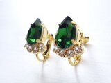 スワロフスキーエメラルドとクリスタルのラインストーンのイヤリング。