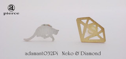 アダマントには、ダイヤモンドを示す意味もあり、強固で美しいダイヤモンドのシルエットを透かしにした土台は、動物達の可愛らしいシルエットに動物本来の気高さを感じさせてくれる大人かわいいピアスです。
