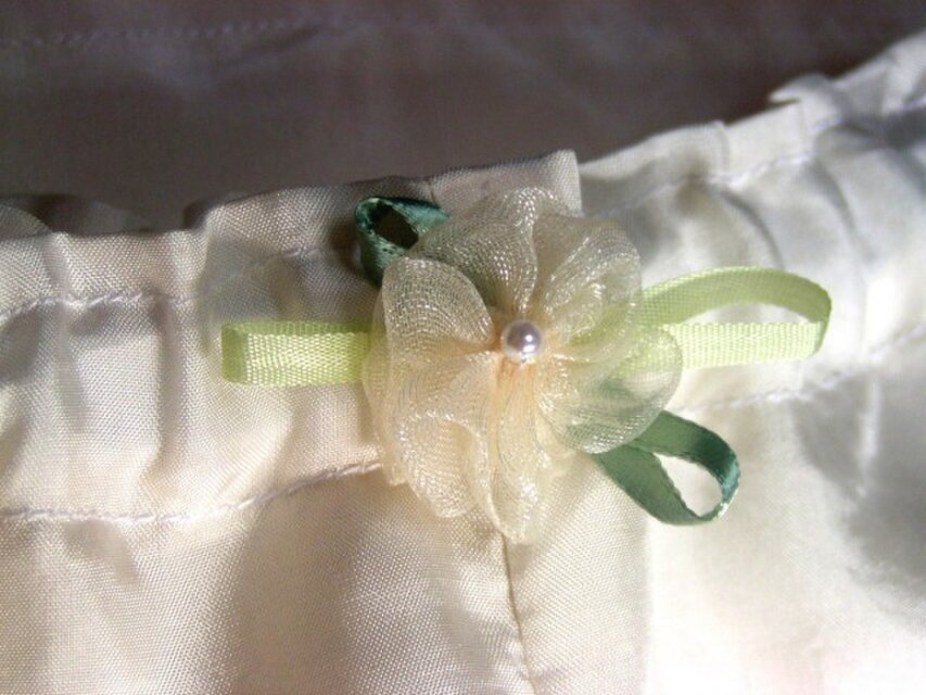 フロントにはパールデイジーリボン、小花で前がすぐわかるように・・・。