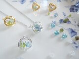 ※ビーズゲージの中に、アクアオーラ、コスモオーラ、ペリドット、クラック水晶、ガラスビーズ等をそ~~と入れて、可愛いネックレスとピアスを作りました。