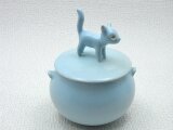 少し雰囲気の違うキャンディーBOXを作りました。尻尾をピント立てて立っているネコです。どちらかというとカワイイ系ですが、ネコのツンデレな、アンニュイな感じを出してみました。でてるかな?トルコブルーとコバルトブルーは、でき次第UPする予定です。今しばらくお待ちください。大きさは直径が約100ミリ、高さが約140ミリです。キャンディー以外にも、お好きな物を入れてお楽しみ下さい。