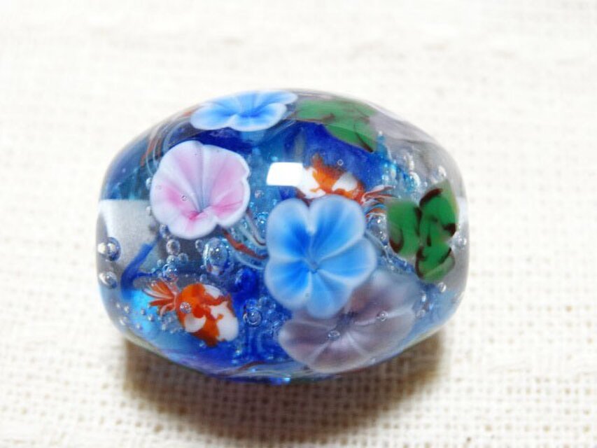 バーナーワークの技法で制作した、手作りのとんぼ玉です。