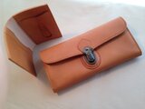 色がとても良い色で質感も良くて気に入っています。 変わった作りなので使い心地は使ってみてからですね。長財布だけど軽くて思ったより収納できました。お揃いのミニもなんとも可愛くて可愛くて。ありがとうございました。 前回のお財布、とても使いやすくて助かりました。 新しい作品も楽しみにしておりますので、またお時間が出来たら、また機会がありましたらよろしくお願いします。