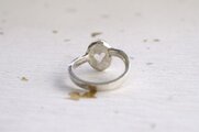 石の色が、薄く半透明のため、下の枠をハート型にくりぬいた部分がやや大きめに石の中に映ります。