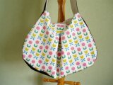 大きめマチのぷっくりたっぷりバッグチューリップ柄×紺
