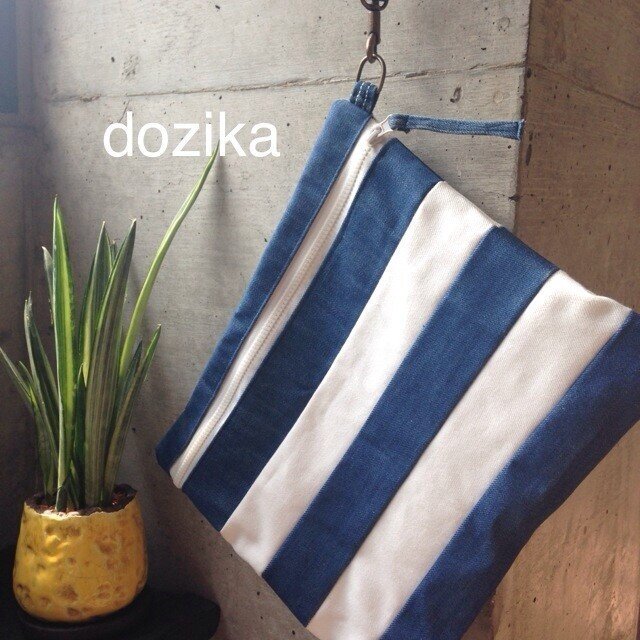 ホワイトデニム×ブルーデニムで、ボーダーにした、大人のデニムクラッチバッグです♪