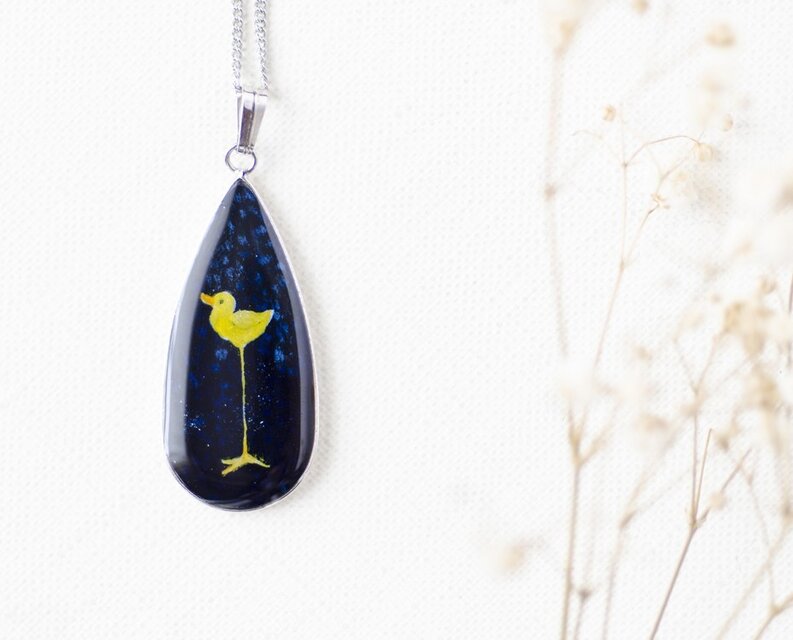 手描きのオリジナルイラストを樹脂で閉じ込めたペンダントトップです。