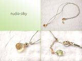 草色のシルク糸が優しい雰囲気の、繊細で個性的なネックレスです。