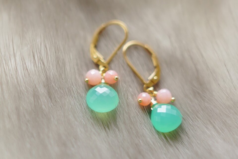 クリソプレーズピンクオパールレバーバックピアス K14GF