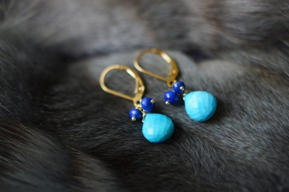 ターコイズラピスレバーバックピアス K14GF