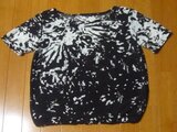 トップスは、衿ぐりを大きめのラウンドネック。裾に細いゴムを入れて、少しブラウジングしています。