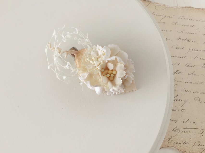 2wayなので、コサージュとして使用したり、ヘアアクセサリーとして着けたりすることができます。