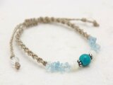 こちらのブレスレットは少しグリーンが入ったターコイズの8mm玉を中心に、