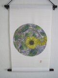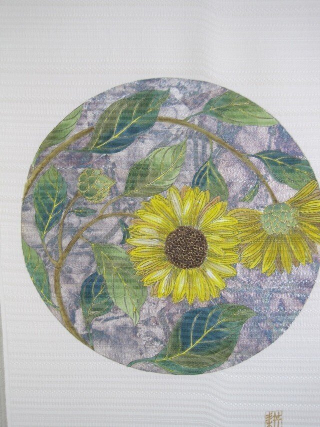 向日葵のバックに 焼き箔 (銀箔を硫黄でやいて変色させ 趣のある