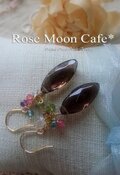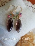 約2cmほどのマーキスカットのスモーキークォーツにアパタイト・アクアクリスタル・ペリドット・ピンクジェード・アメジストなどの天然石をたらして繊細なピアスにしてみました。 ゆらゆれて大人っぽいです。 金具は全てK14GF製です。