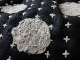 お色は、黒地にベージュの糸で刺し子、ドットは麻色 ( ナチラル ) です 。