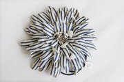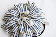 夏の海を連想させるさわやかなストライプのダリアのヘアゴムです。イタリア製のコットン生地で仕立てました。