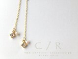 クリアーストーンが埋め込まれたスクエアー型のゴールドパーツとミニホワイトパールをアメリカンピアスに合わせました。シンプルで繊細なラインがフェミニンな雰囲気を演出してくれます。キラキラ華やぐ華奢なチェーンの揺れ感を是非お楽しみください。