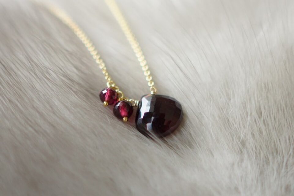 【G様受注製作】Wガーネットシンプルネックレス2 14KGF