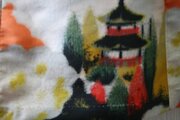 大正から昭和にかけて作られたと思われる銘仙の着物を丁寧にほどき、洗い、シンプルな七枚はぎのスカートを作りました。 ウエストの後ろ部分にゴムを入れているので正面はスッキリとした印象になります。生地のベースは落ち着いたクリーム色で、赤や黄色で大胆に唐風の風景が描かれています。