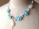 パステルブルーのフラワーモチーフに、