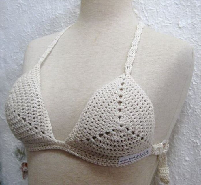 三角形のかぎ針編みのホルターネックブラジャーです。