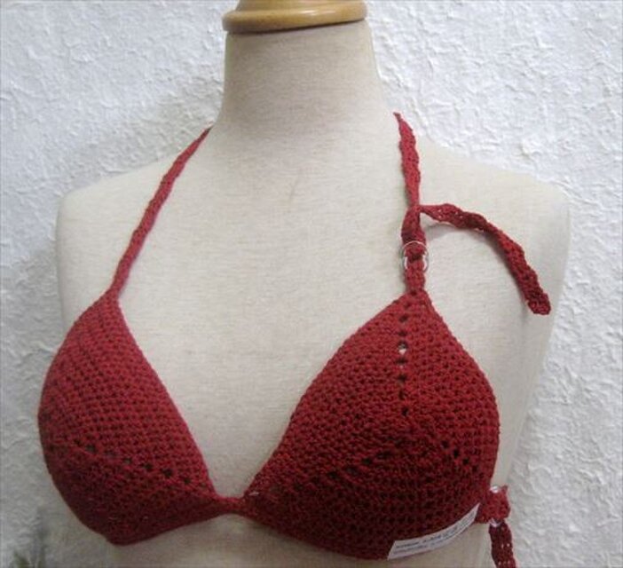 三角形のかぎ針編みのホルターネックブラジャーです。
