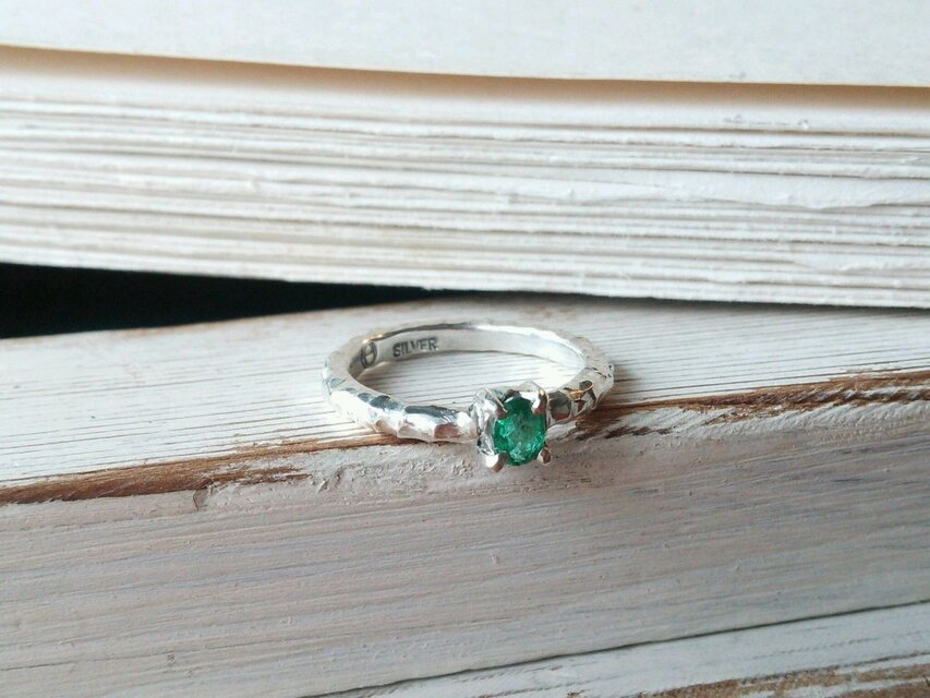 鮮やかなグリーン色のオーバルカットのエメラルドをセットしたシルバーのリングです。