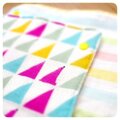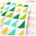 三角×グリーン系のネオンカラーが元気で明るい印象の生地と、ポップなカラフルボーダーの生地のリバーシブルタイプです。