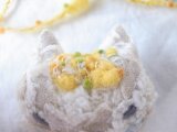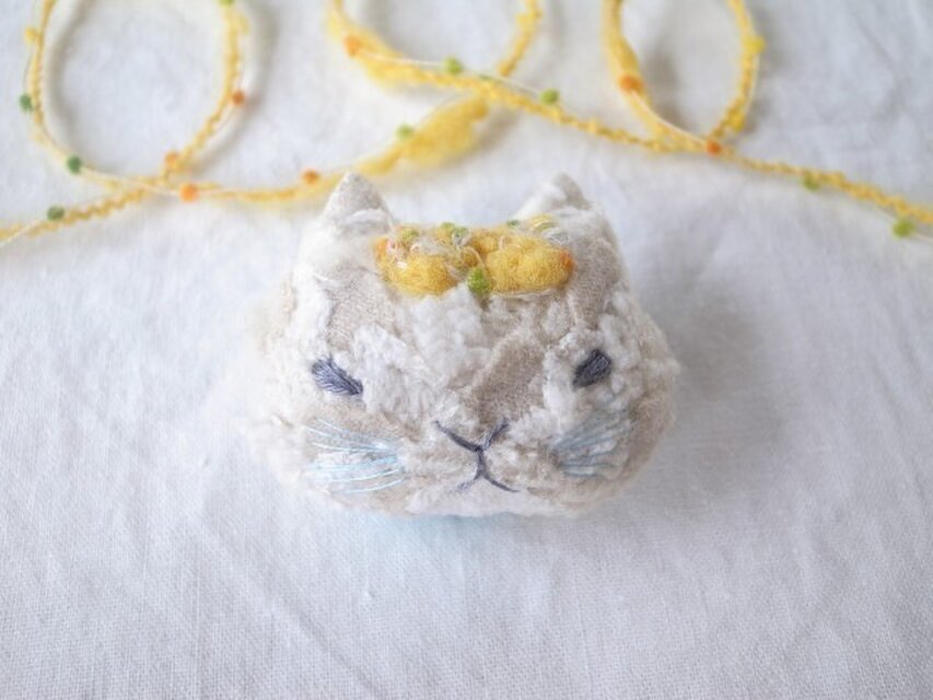 もこもこねこのブローチ きいろ