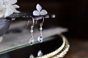 14kgf★ハーキマーダイヤモンドと淡水パールのピアス