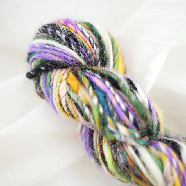 ”夜のあつまり”という名前のように多色の繊維を手紡ぎしました。