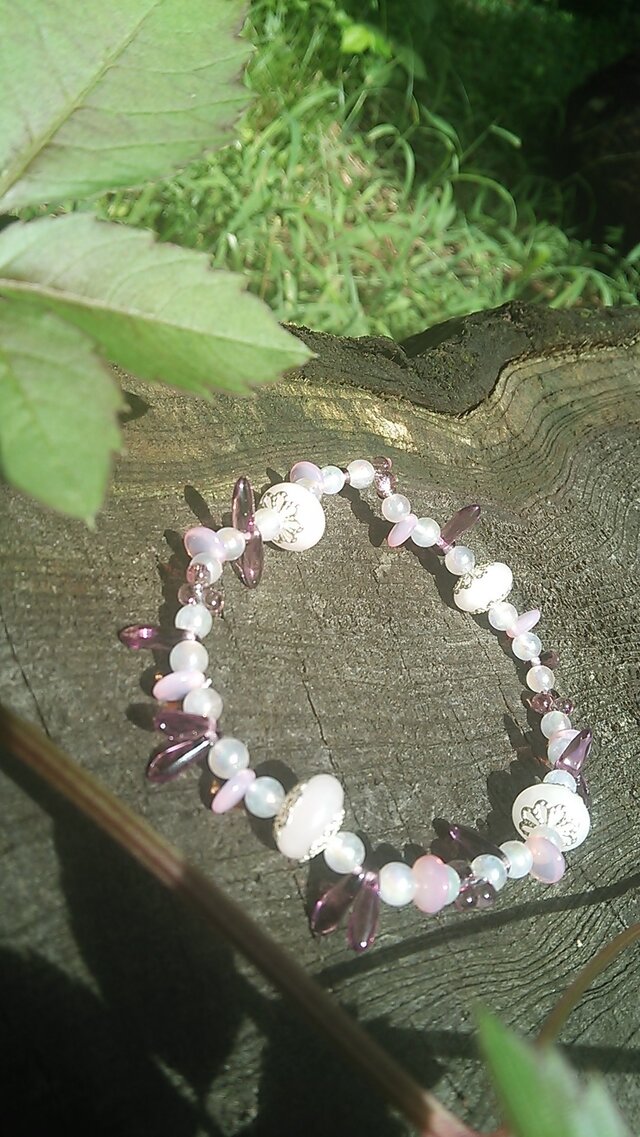 動きのあるチェコビーズにコロンとしたローズクォーツが愛らしいです。