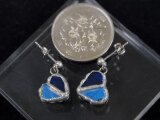 色ガラスと向きによって色が変わるダイクロガラスを使ってハート型を作っています