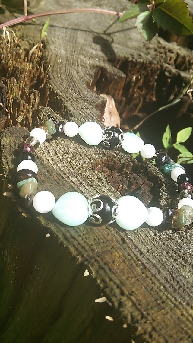 半透明な水色のアマゾナイトは、その名前のように大河のような雄大な性質で男性的な力強さがあります。
