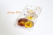 押し花やラメ、ストーン等を別の層で仕上げる事により、他にはない奥行きや立体感が生まれます。一般的なレジンケースとは一味違う一品です☆