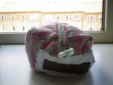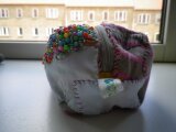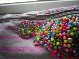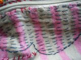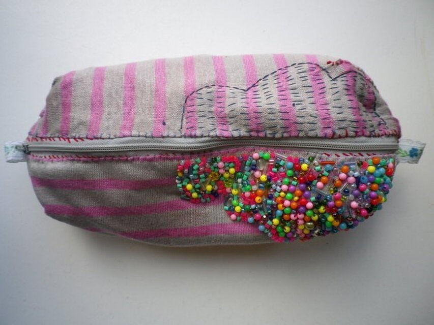 桃色とグレイのボーダーにごちゃごちゃビーズと刺繍を入れました。
